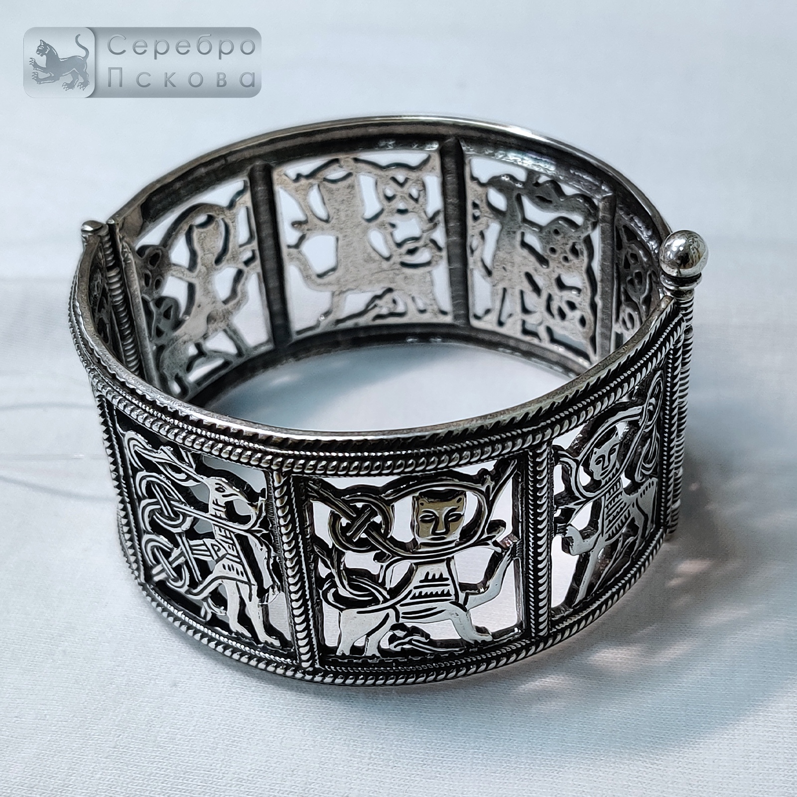 Прорезной браслет из серебра 925 пробы — это тонкая, изысканная работа новгородских мастеров, в которой соединены аккуратность исполнения и глубокая связь со славянской художественной традицией. Каждое изделие создаётся вручную, что позволяет сохранить подлинную фактуру металла и передать характер древнего орнаментального стиля. Прорезная техника требует филигранной точности: узор буквально «вынимается» из серебра, оставляя лёгкое, воздушное плетение линий. Такой браслет сразу привлекает внимание — не яркой массивностью, а утончённостью, вниманием к деталям и редкой аккуратностью. Славянские мотивы в орнаменте браслета несут в себе значение гармонии, защиты и внутренней силы. Это не просто украшение, а символическое сопровождение хозяина — деталь, которая подчёркивает индивидуальность и чувство связи с корнями.