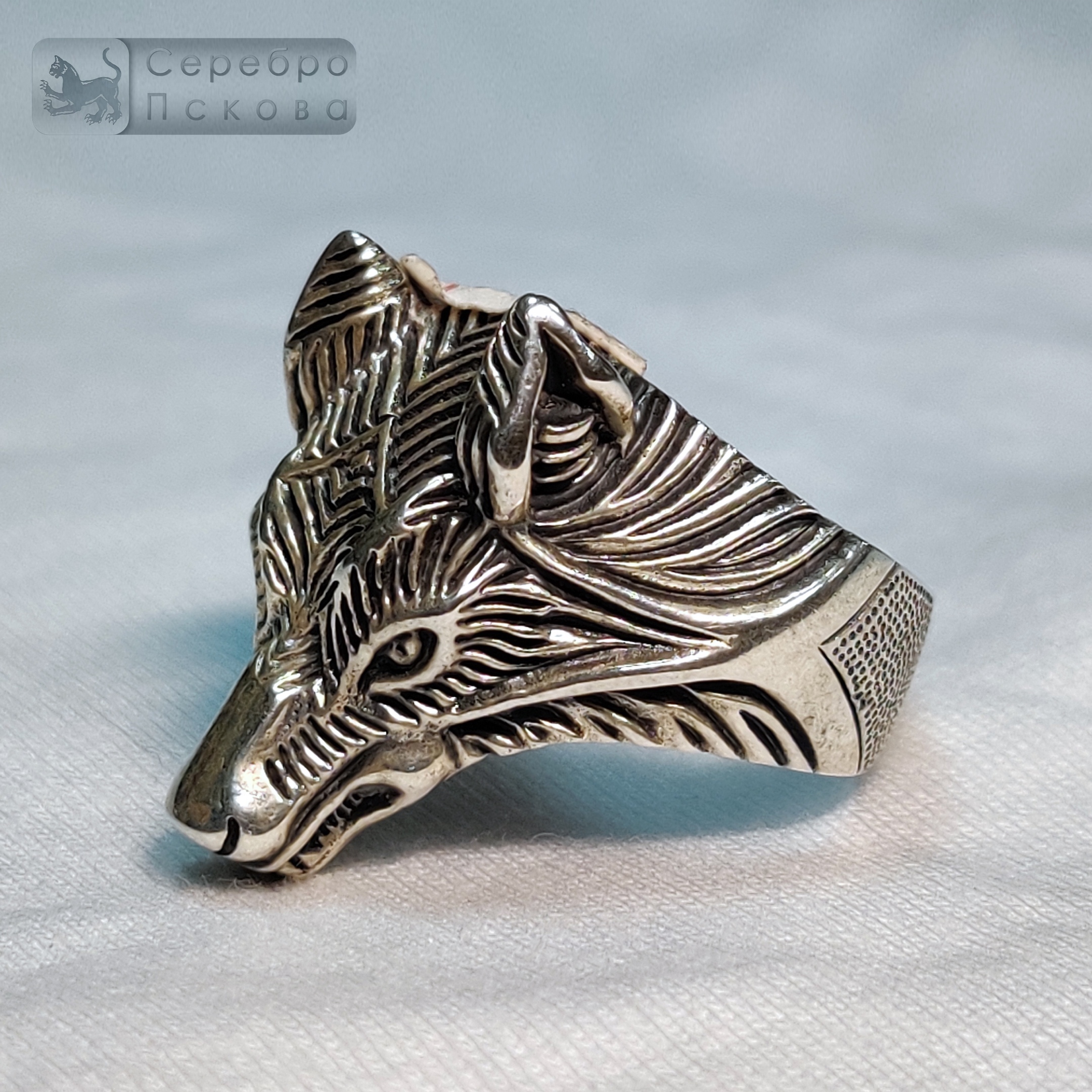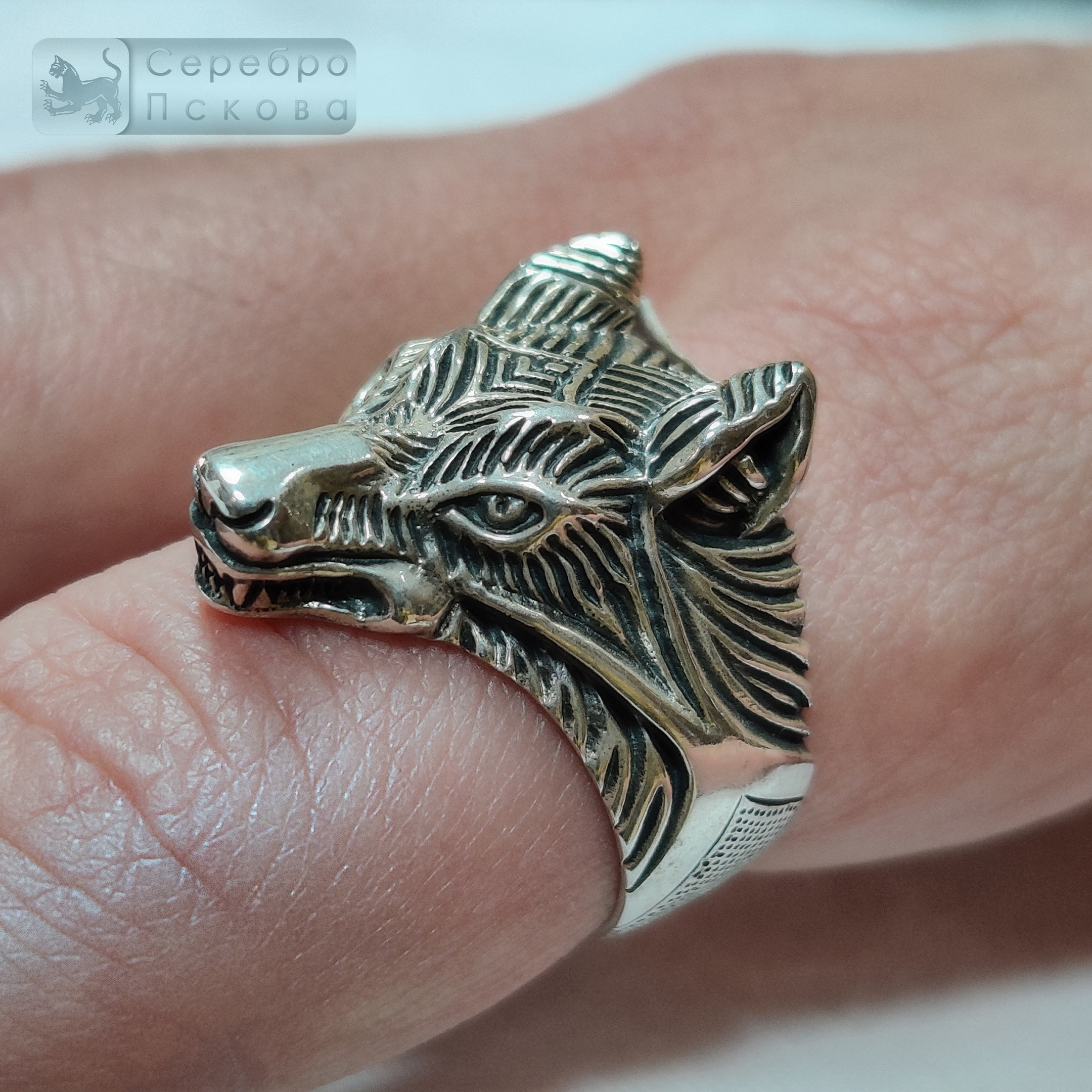 Кольцо «Голова Волка» — выразительное украшение из серебра 925 пробы, выполненное вручную псковскими мастерами. Форма кольца передаёт детализированный облик волчьей головы: острые черты, уверенный взгляд и характер, который ощущается в каждом штрихе. Благодаря безразмерной конструкции кольцо удобно регулируется и подстраивается под любую руку. Волк в славянской традиции — один из самых сильных и уважаемых символов. Его считали проводником между мирами, защитником и носителем мудрости. Волк олицетворяет свободу, силу духа, верность своему пути и способность противостоять трудностям. Мужчины носили изображения волка как оберег, подчёркивающий решительность, смелость и независимость.