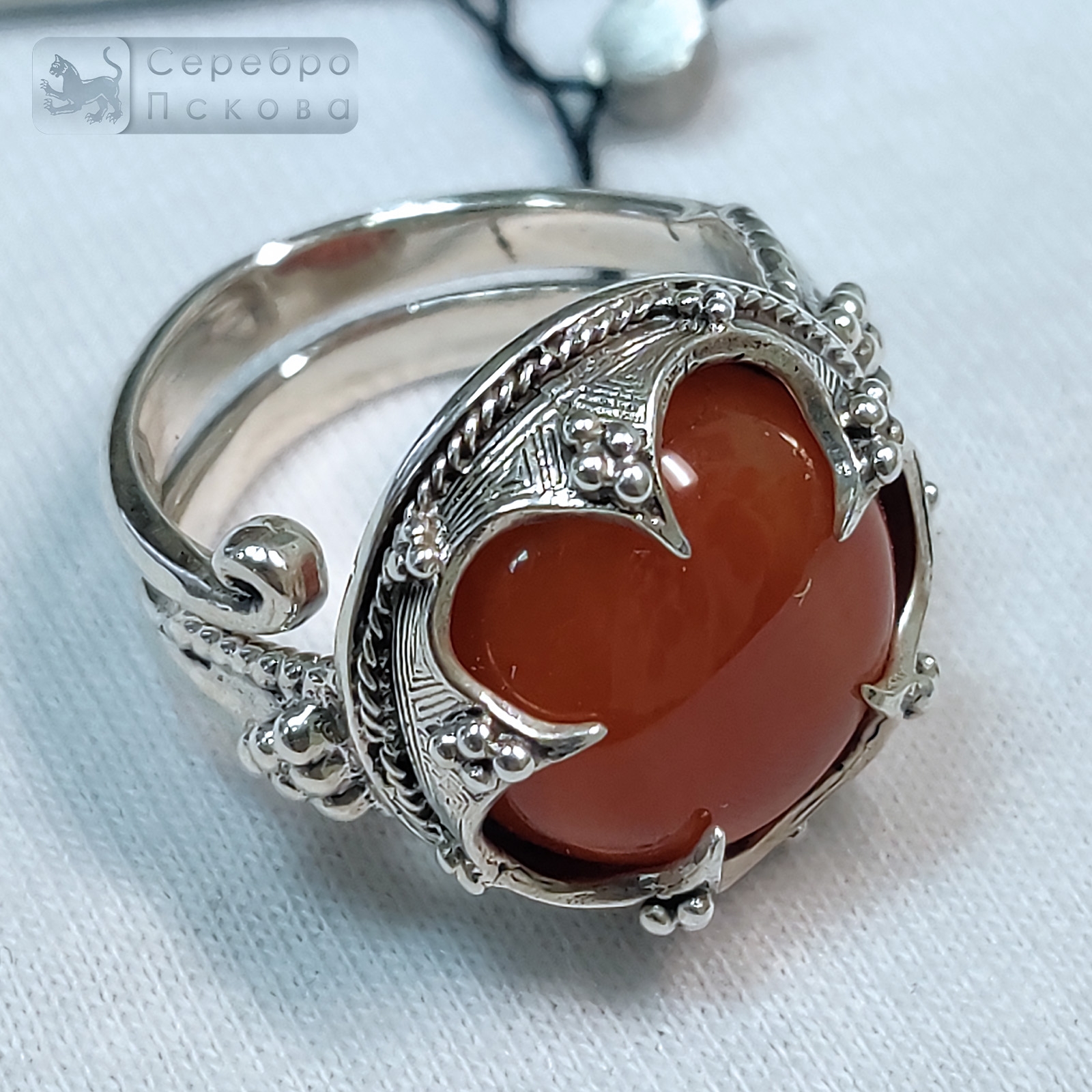 Кольцо из серебра 925 пробы — это воплощение духа эпохи викингов и силы природных стихий, созданное вручную. Каждое изделие уникально благодаря выбору натурального камня, который становится сердцем украшения. Доступные камни и их символика: Лабрадор — раскрытие внутреннего потенциала, связь с древней мудростью Горный хрусталь — чистота помыслов, ясность сознания и энергетическая гармония Сердалик (сердолик) — жизненная сила, радость и творческая энергия Зеленый агат — равновесие, процветание и исцеление Черный агат — защита от негатива, сила духа и стабильность Бирюза — удача, искренность и обновление Особенности исполнения: Мощный дизайн, вдохновленный артефактами острова Готланд Глубокая оправа, надежно удерживающая натуральный камень Ручная гравировка скандинавских орнаментов Универсальное безразмерное плетение