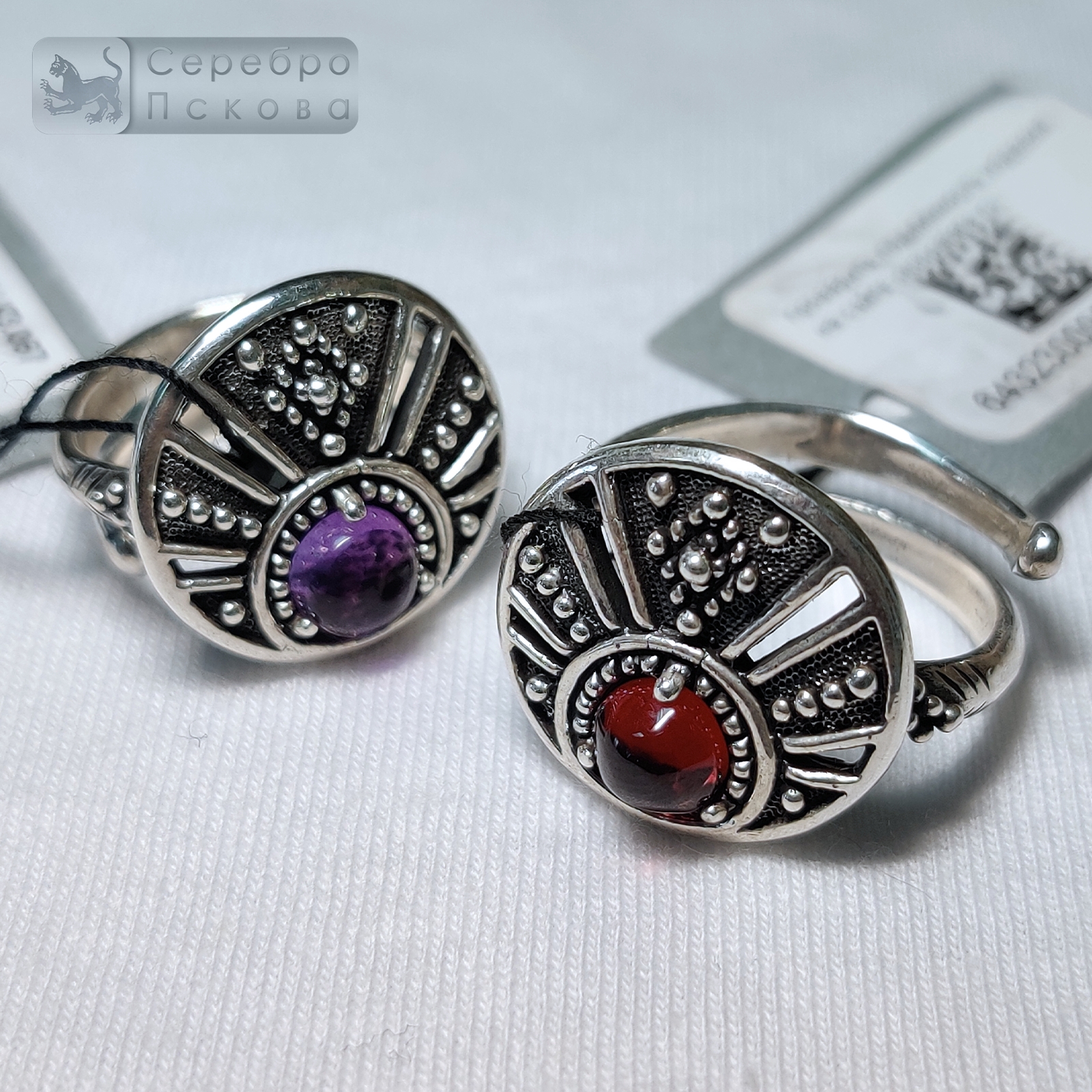 Кольцо «Лунница» с натуральными камнями — элегантное украшение ручной работы из серебра 925 пробы, выполненное псковскими мастерами. Форма лунницы символизирует женскую силу, нежность и духовное равновесие. В сочетании с натуральным камнем — агатом, аметистом или гранатом — украшение приобретает особую энергию и индивидуальный характер. Каждое кольцо создаётся вручную, что делает каждое изделие уникальным. Чернёное серебро подчёркивает фактуру и блеск камня, создавая гармоничный контраст.