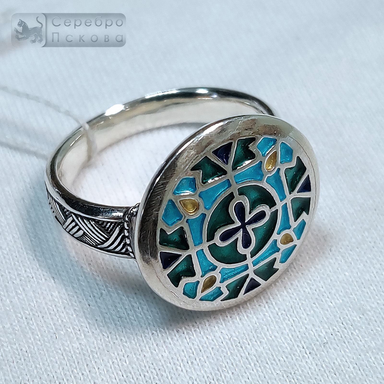 Кольцо «Ольгин Крест» — стильное и символичное украшение ручной работы из серебра 925 пробы с добавлением горячей эмали. Оно воплощает древний орнамент Ольгин Крест, символ защиты со всех сторон света. Считалось, что сама княгиня носила украшения с этим орнаментом, и он приносил покой и безопасность владельцу. Кольцо защищает и вдохновляет, соединяя древнюю традицию и мастерство псковских ювелиров. Техника горячей эмали придаёт изделию насыщенные оттенки, подчёркивает детали узора и создаёт эффект живого сияния. Серебро 925 пробы гарантирует прочность и долговечность украшения.