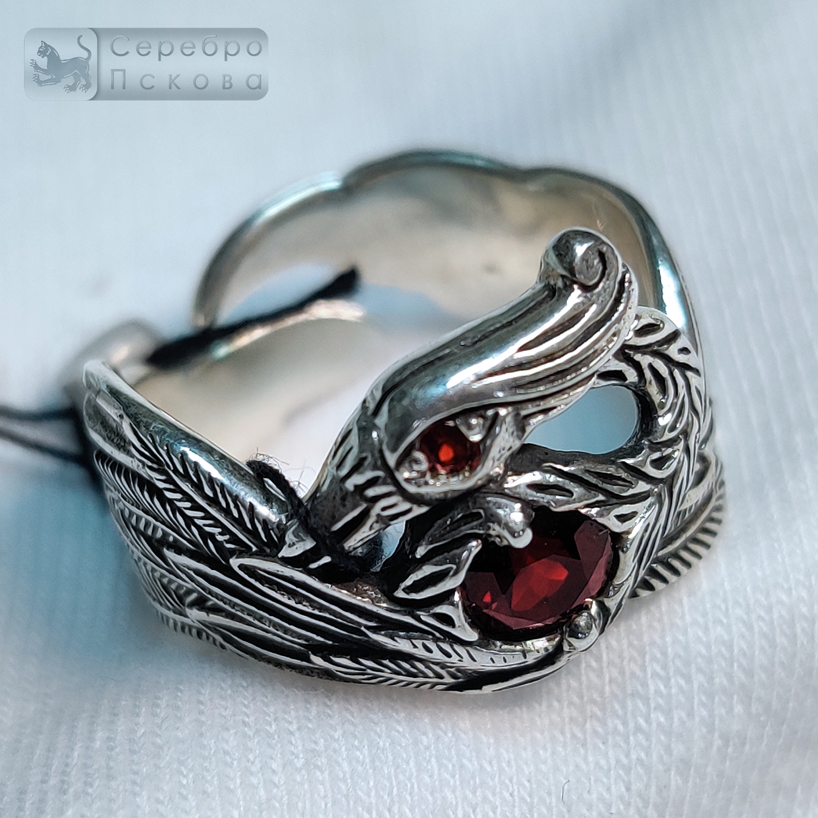 Кольцо из серебра 925 пробы — это изящное воплощение утонченности и гармонии, созданное вручную с использованием натурального граната. Украшение сочетает в себе анималистичную эстетику и глубокую символику, подчеркивая индивидуальность своей обладательницы. В основе дизайна — стилизованный образ цапли, птицы, символизирующей в славянской традиции: Мудрость и терпение — способность выжидать и принимать верные решения Гармонию с природой — единение с водной и воздушной стихиями Духовную чистоту — умение сохранять равновесие в любых ситуациях Натуральный гранат, украшающий кольцо, усиливает его символику, добавляя: Страсть и энергию — камень активизирует жизненные силы и решимость Защиту и силу духа — оберегает от негативных воздействий Процветание — привлекает успех и уверенность в себе Особенности исполнения: Безразмерная конструкция, обеспечивающая идеальную посадку на любой палец Ажурная работа, передающая изящные линии и пластику птицы Надежное крепление граната, раскрывающее его глубинный цвет и блеск Тщательная полировка, подчеркивающая благородство серебра и насыщенность камня