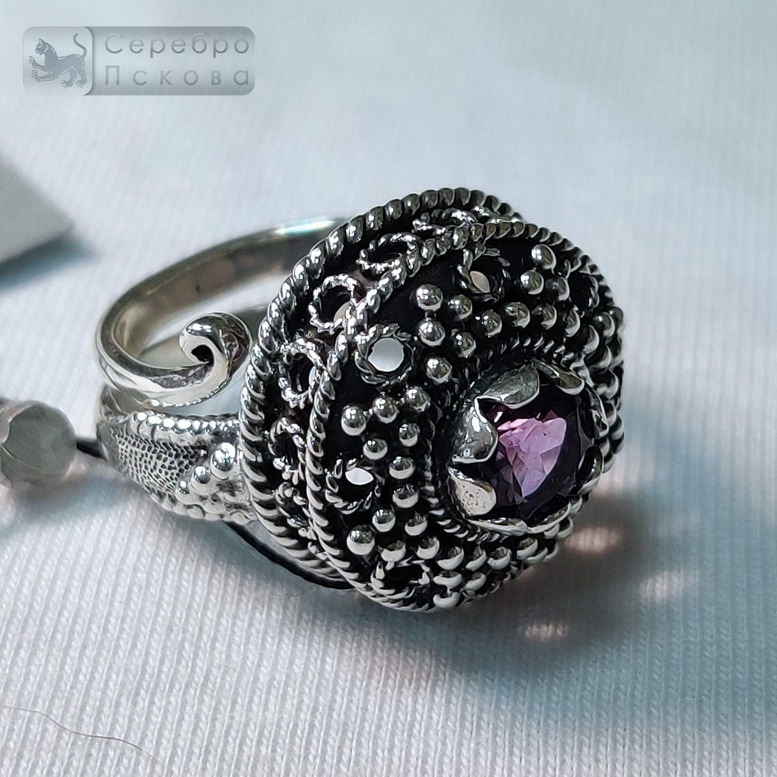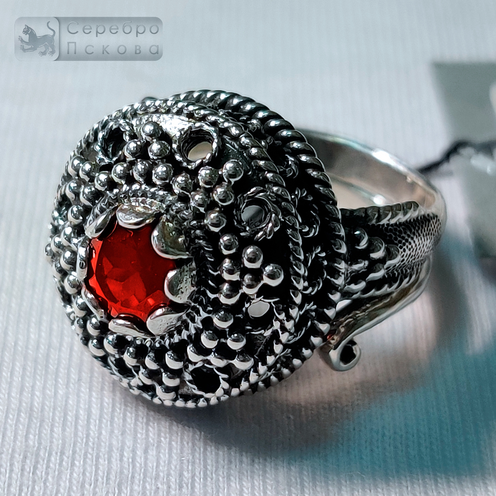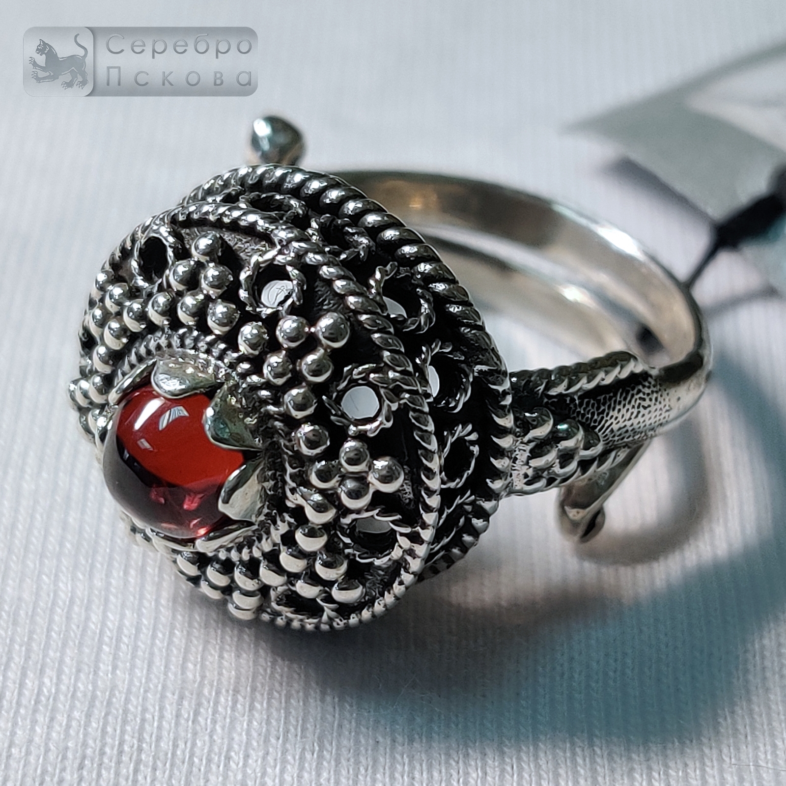 Кольцо из серебра 925 пробы — это воплощение царской эстетики, созданное по мотивам исторических прототипов парадных украшений. Каждый экземпляр выполняется вручную с возможностью выбора натурального камня: граната, аметиста, зеленого агата, цитрина или других самоцветов. В основе дизайна — монументальные формы и сложная орнаментация, характерные для царских регалий и ювелирных изделий знати. Кольцо символизирует: Величие и власть — отсылка к историческому статусу и достоинству Энергию избранного камня — усиление свойств выбранного самоцвета Универсальность — гармоничное сочетание с разными стилями Особенности исполнения: Безразмерная конструкция с регулируемым диаметром Высокая огранка и надежное крепление натурального камня Сложный рельефный орнамент, выполненный вручную Богатая полировка, подчеркивающая благородство серебра