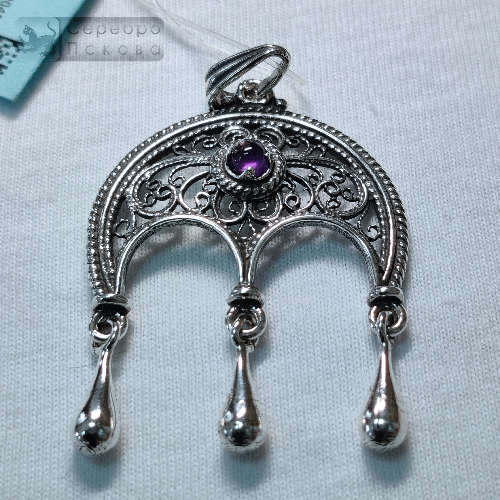 Подвеска «Лунница» с натуральными камнями — украшение ручной работы из серебра 925 пробы, созданное псковскими мастерами. Символ лунницы воплощает женскую силу, мягкость и внутреннее равновесие. В сочетании с натуральными камнями — бирюзой, аметистом, гранатом или агатом — она приобретает особое значение: усиливает интуицию, защищает от тревог и наполняет энергией. Каждая подвеска изготавливается вручную, а камни подбираются индивидуально, чтобы подчеркнуть природную красоту и характер изделия.