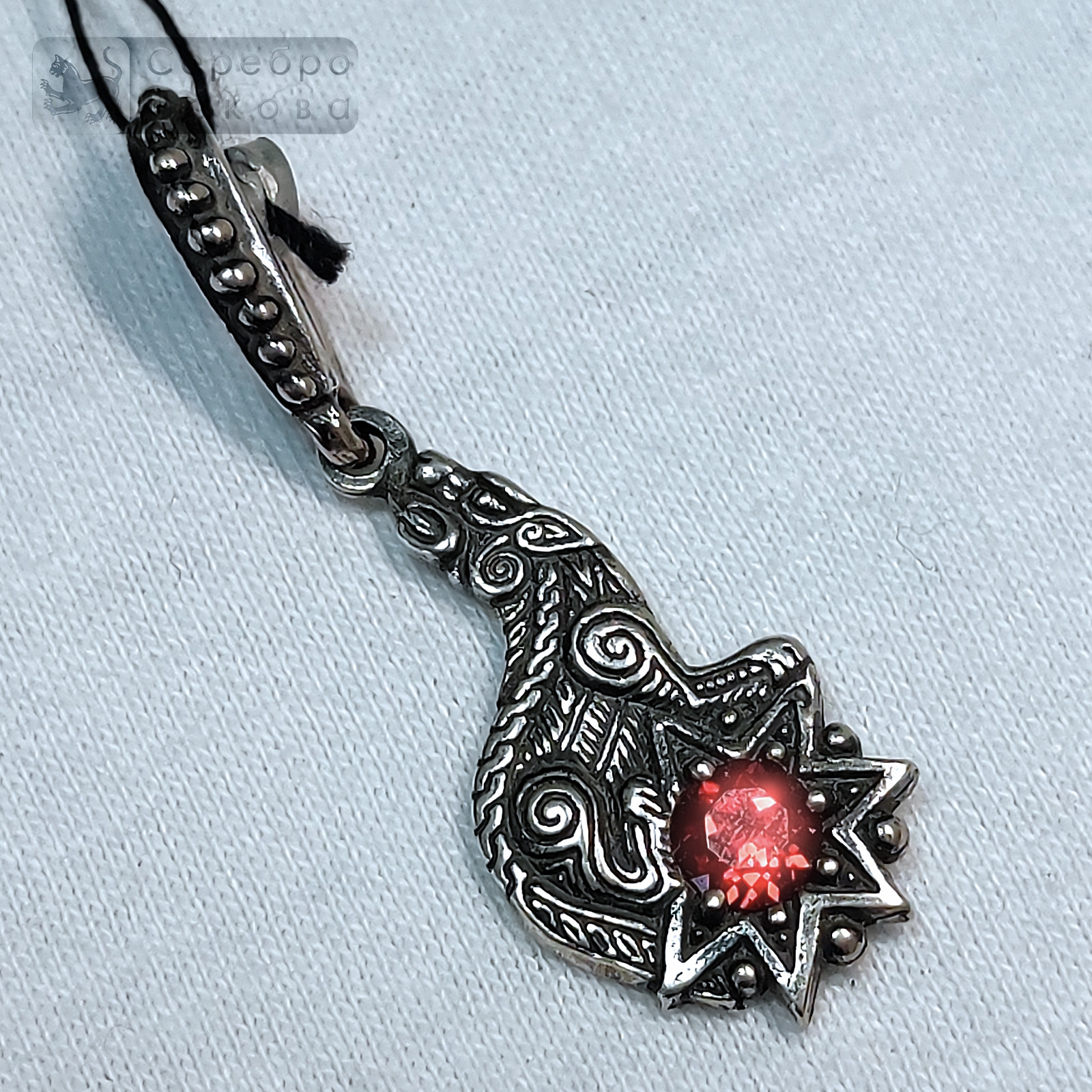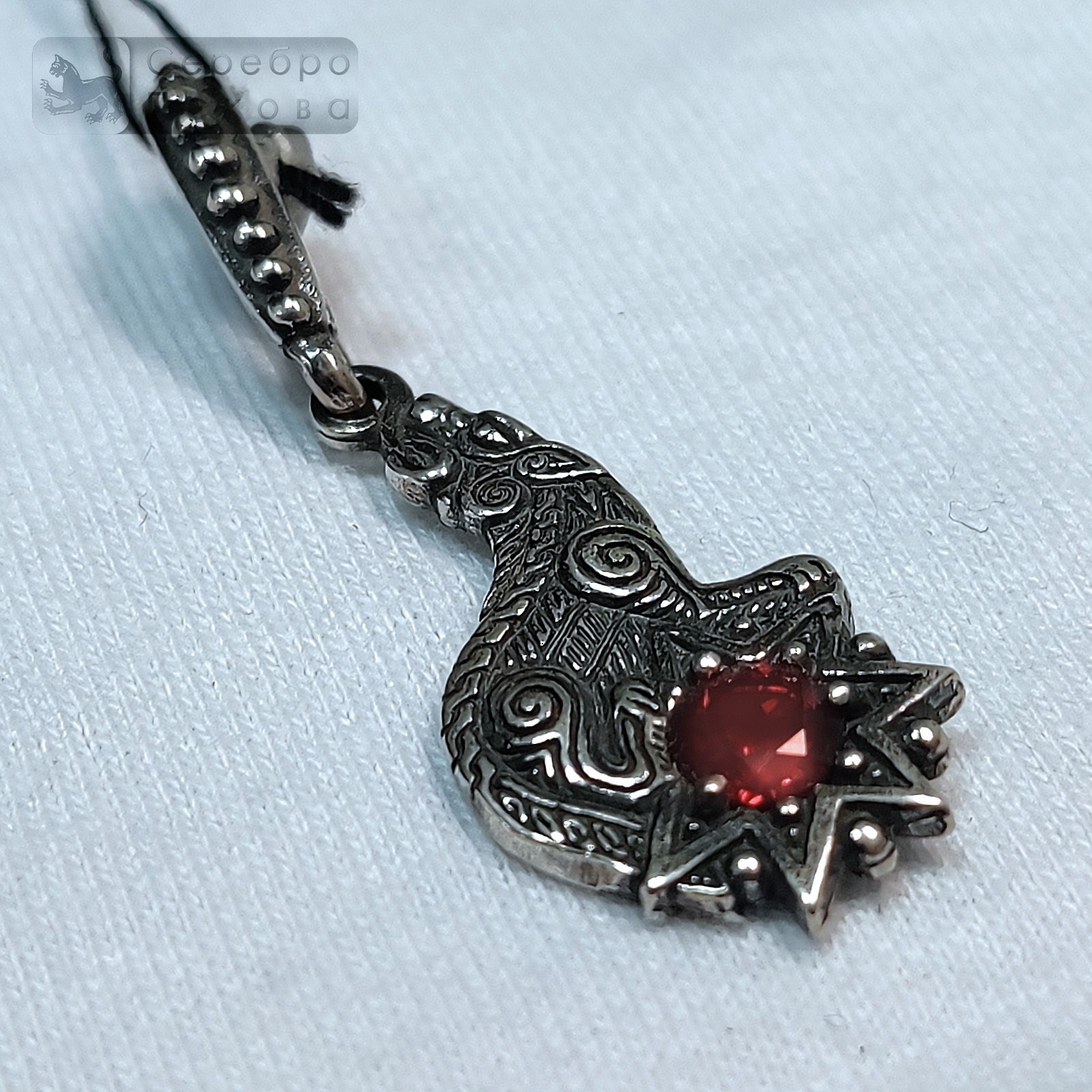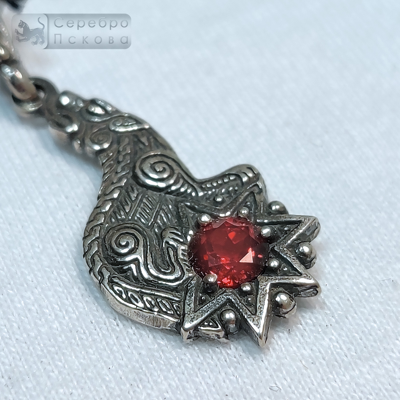 Волк в славянской традиции — образ хранителя, символ смелости, верности, внутренней свободы и инстинкта защитника. Его носили как сильный мужской оберег. Добавленный натуральный гранат подчёркивает стойкость характера и жизненную энергетику владельца. Подвеска изготовлена вручную из серебра 925 пробы.