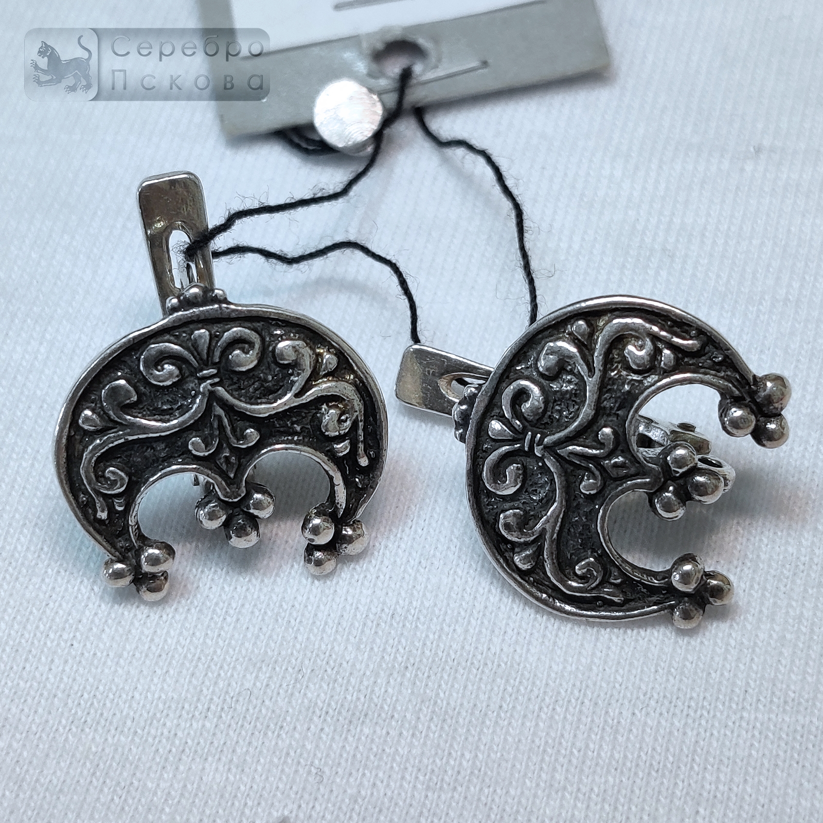 ✝️ Символика: покровительство Богородицы, защита, благодать, женская чистота, душевный покой Серьги «Лунница Богородичная» — это больше чем украшение. Это выражение глубокой веры и связь с духовными традициями, воплощенная в искусстве псковских серебряников.