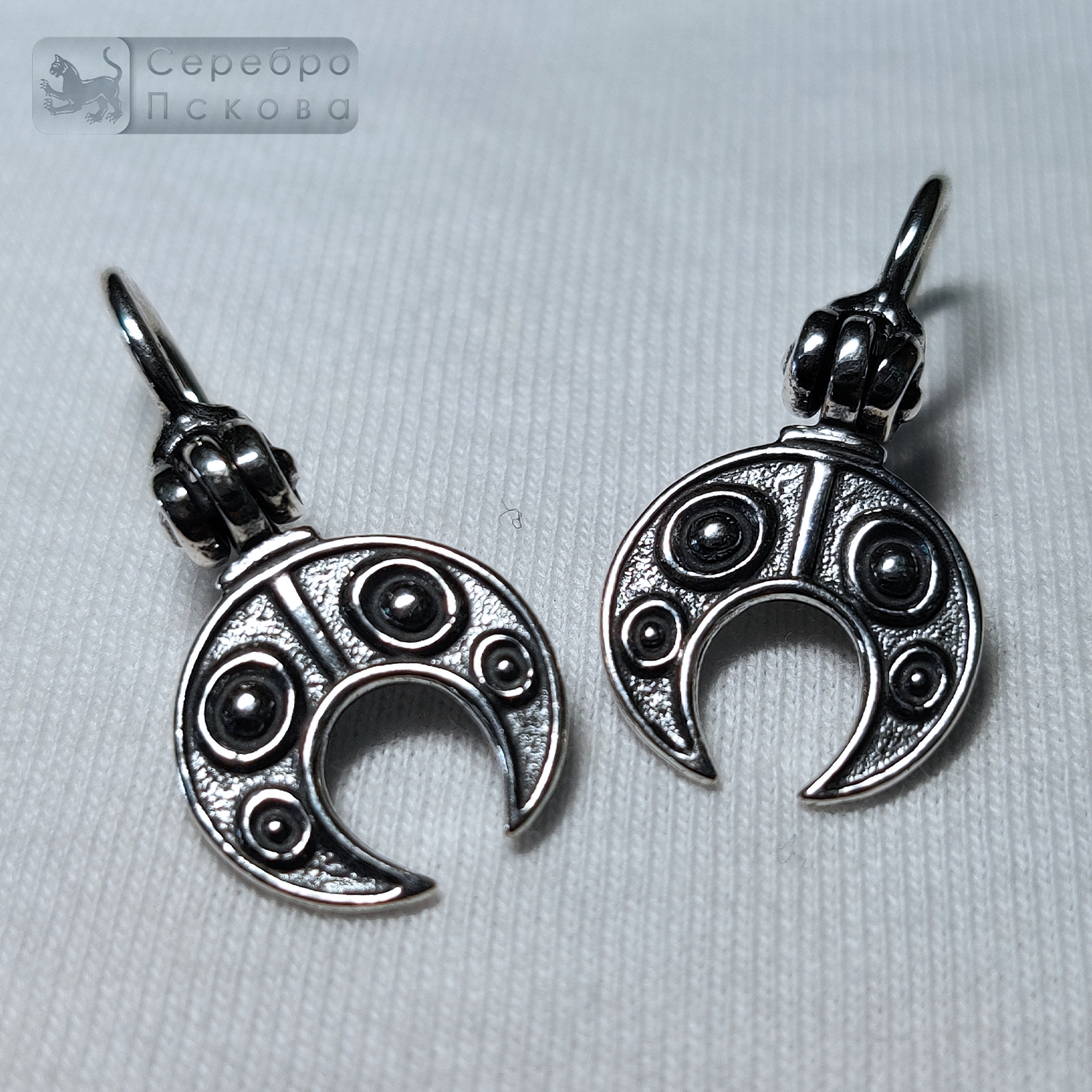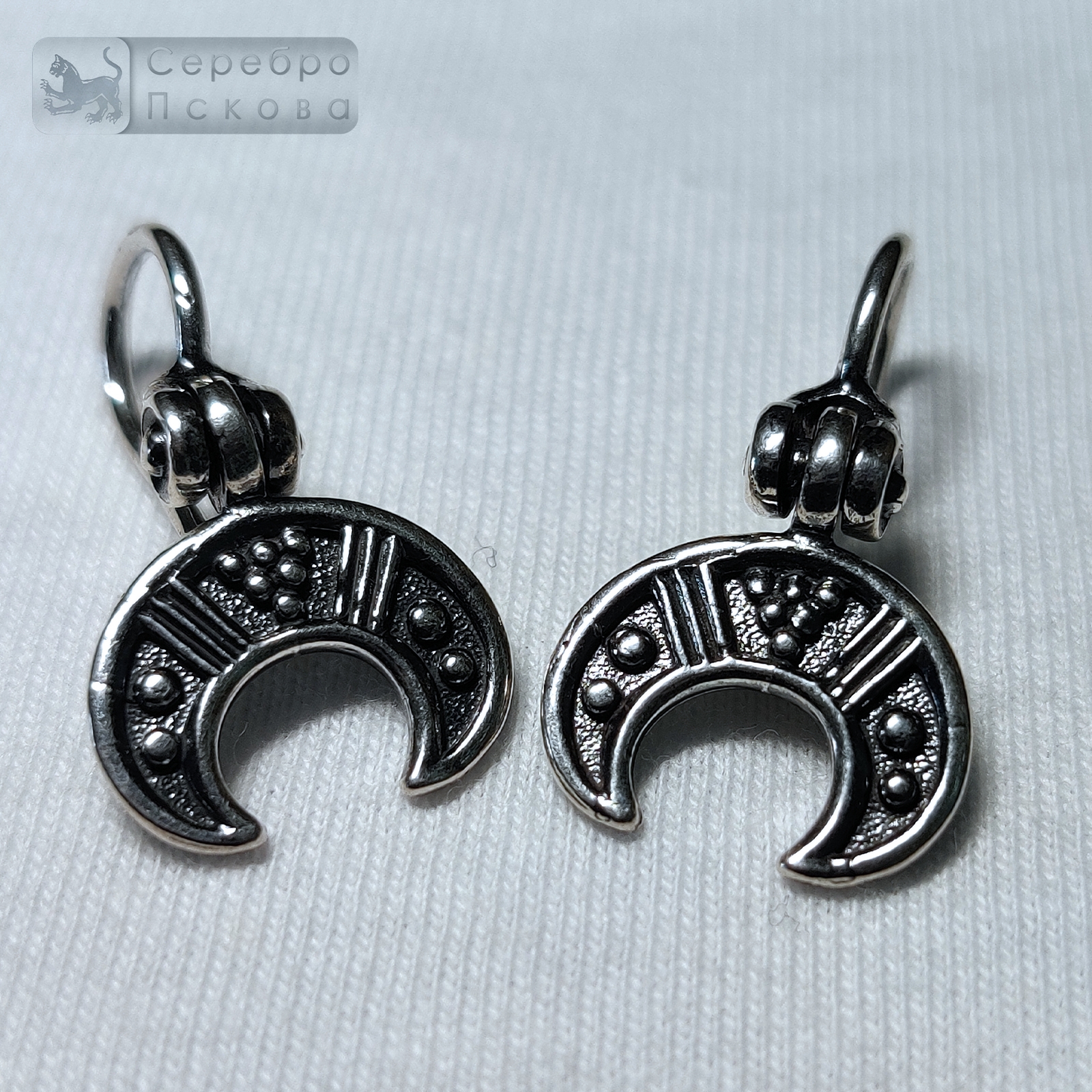 Серьги «Лунница малые» — лёгкое и утончённое украшение ручной работы из серебра 925 пробы, созданное псковскими мастерами. Изящная форма лунницы воплощает древний символ женственности, гармонии и защиты. Такие украшения носили славянки как оберег, приносящий душевное равновесие и благополучие. Серьги выполнены без эмали, что подчёркивает природную красоту серебра и изысканный рельеф орнамента. Крепление в виде крючка придаёт изделию лёгкость и подвижность, позволяя украшению мягко покачиваться при каждом движении.