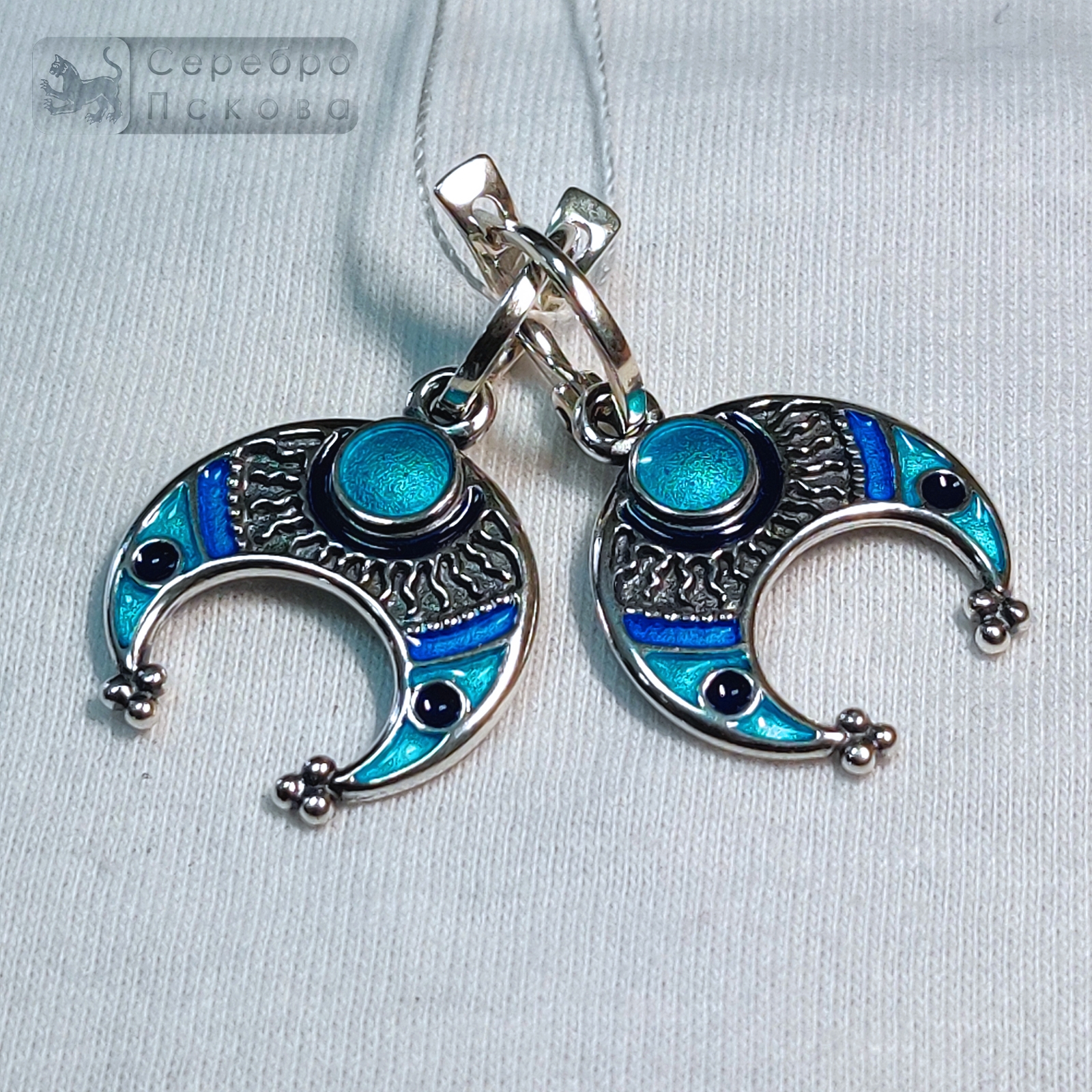 Серьги «Лунница» с горячей эмалью — изысканное украшение ручной работы из серебра 925 пробы, созданное псковскими мастерами. Оно соединяет древнюю символику и ювелирное мастерство, превращая каждую деталь в произведение искусства. Лунница — древний женский амулет, символизирующий плодородие, гармонию и внутреннюю силу. Её форма, напоминающая луну, испокон веков считалась покровом женской энергии и защиты. Техника горячей эмали придаёт украшению живые, насыщенные оттенки. Цвета переливаются при свете, создавая эффект мягкого сияния. Такое сочетание делает каждую пару серёг уникальной.