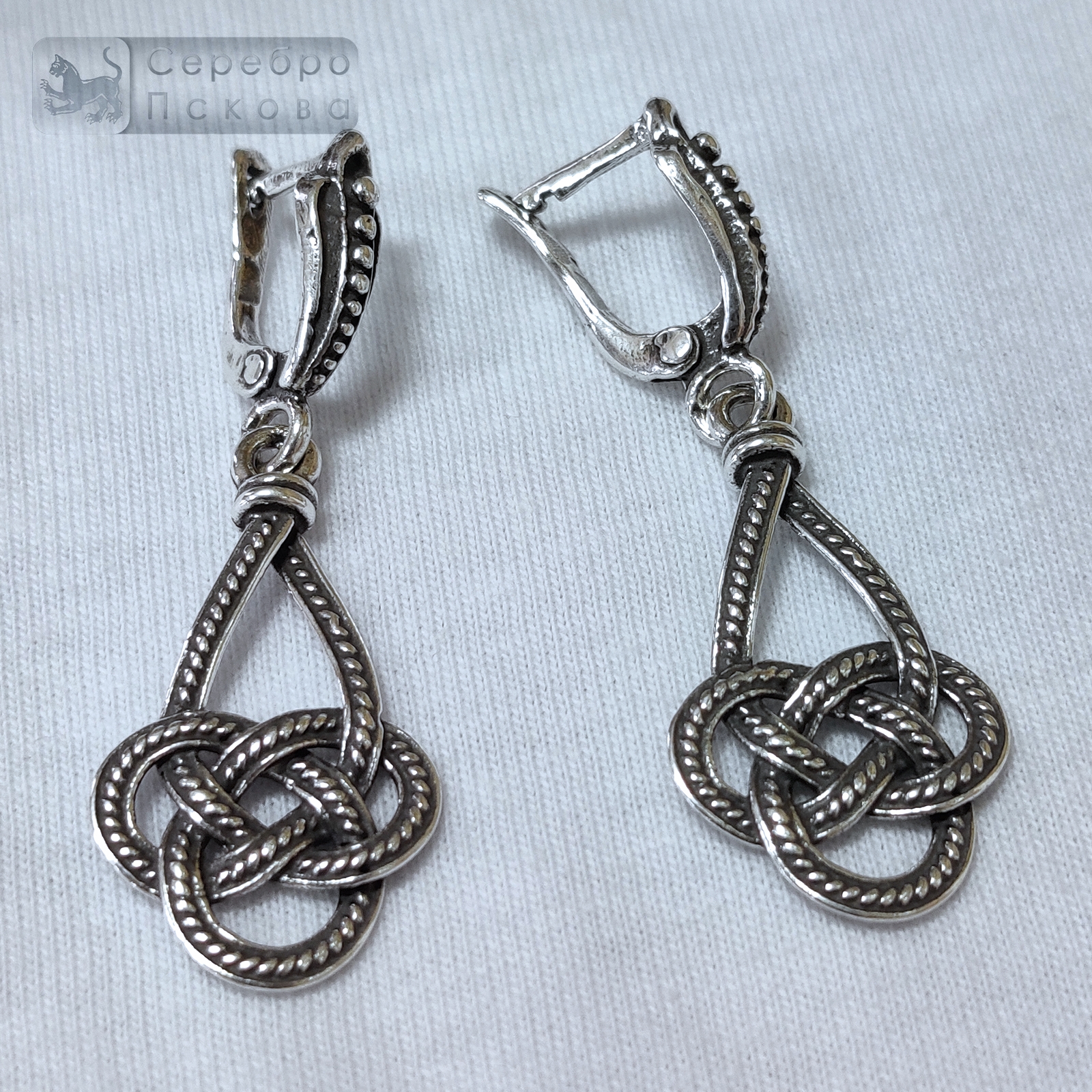 Серьги «Узел жизни» — элегантное украшение ручной работы из серебра 925 пробы, наполненное древним смыслом. Узел жизни — символ вечного движения, гармонии и внутренней силы. В славянской традиции он считался знаком единства души и мира, помогал сохранять энергию и оберегал от тревог. Серьги выполнены псковскими мастерами вручную. Чернёное серебро подчёркивает глубину узора и делает каждое изделие уникальным.